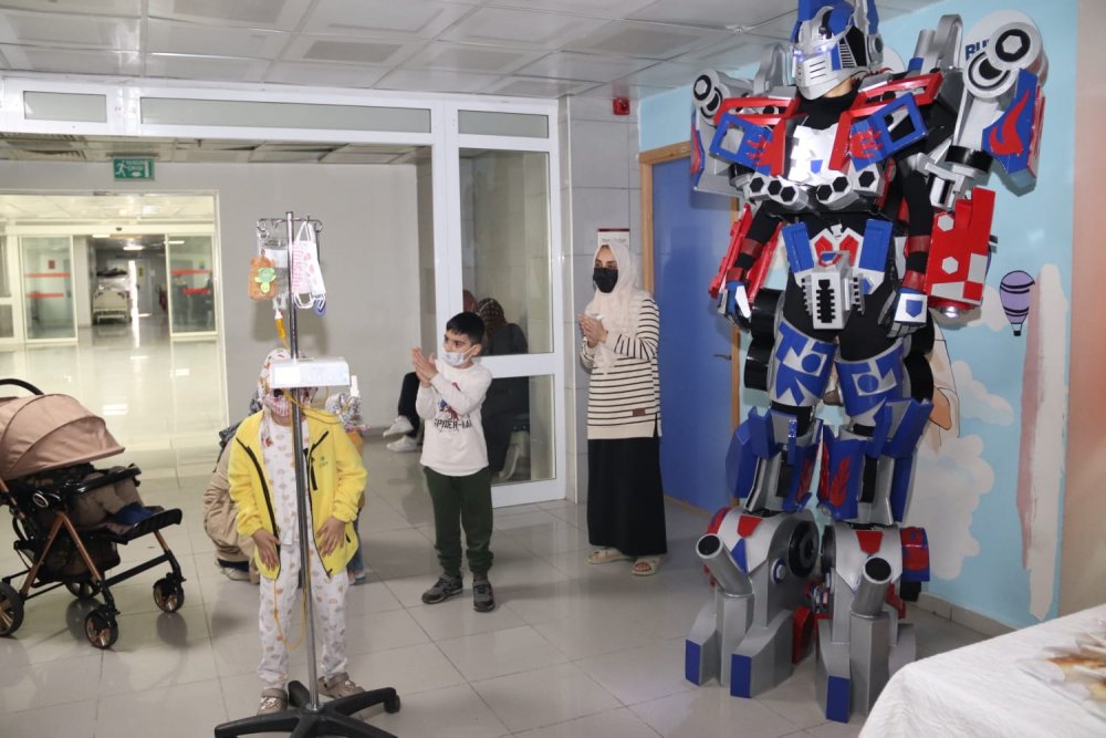 Etkinliğin en keyifli anlarından biri ise özel olarak davet edilen TRANSFORMERS karakterinin çocuklarla buluşması oldu. Maskotun alana girmesiyle birlikte minik kahramanların yüzlerinde büyük bir sürpriz ve heyecan oluştu. Çocuklar: TRANSFORMERS ile dans etti, bol bol fotoğraf çektirdi, kısa süreliğine de olsa tedaviyi unutarak doyasıya eğlendi. Etkinlik alanındaki neşe dolu anlar, günlük hastane rutinine umut ve mutluluk kattı.
